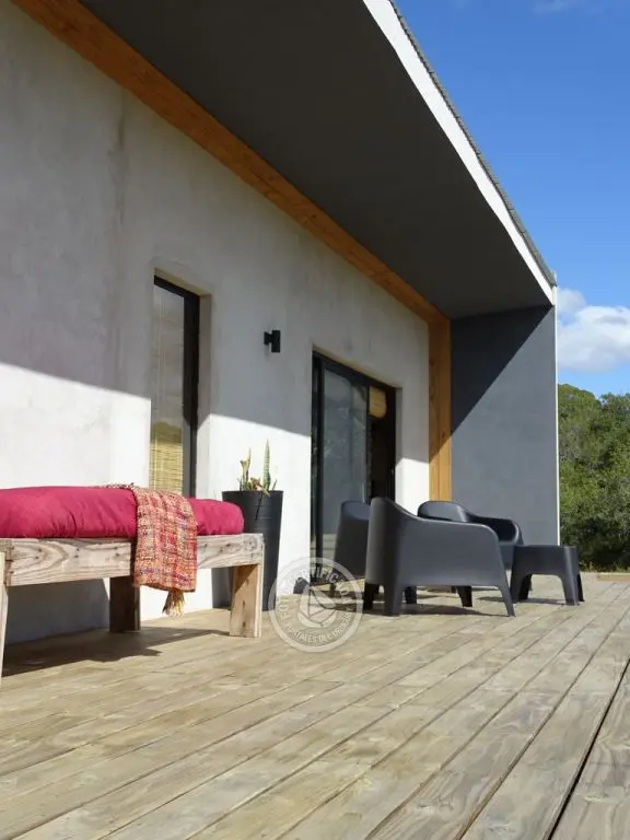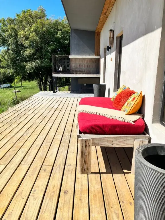 Amplio deck con vista a la sierra.
